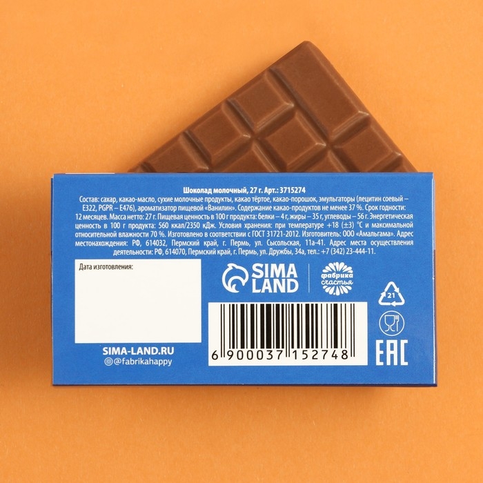 Шоколад молочный «Халява»: 27 г.