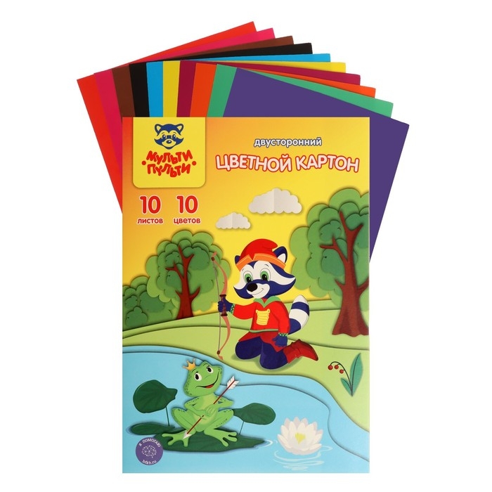 Картон цветной двухсторонний А4, 10 листов, 10 цветов Мульти-Пульти, мелованный