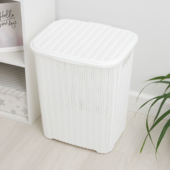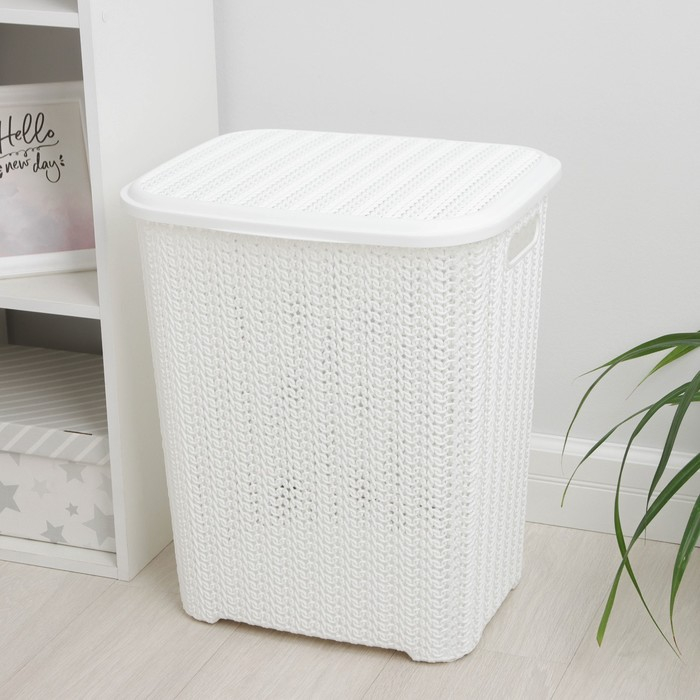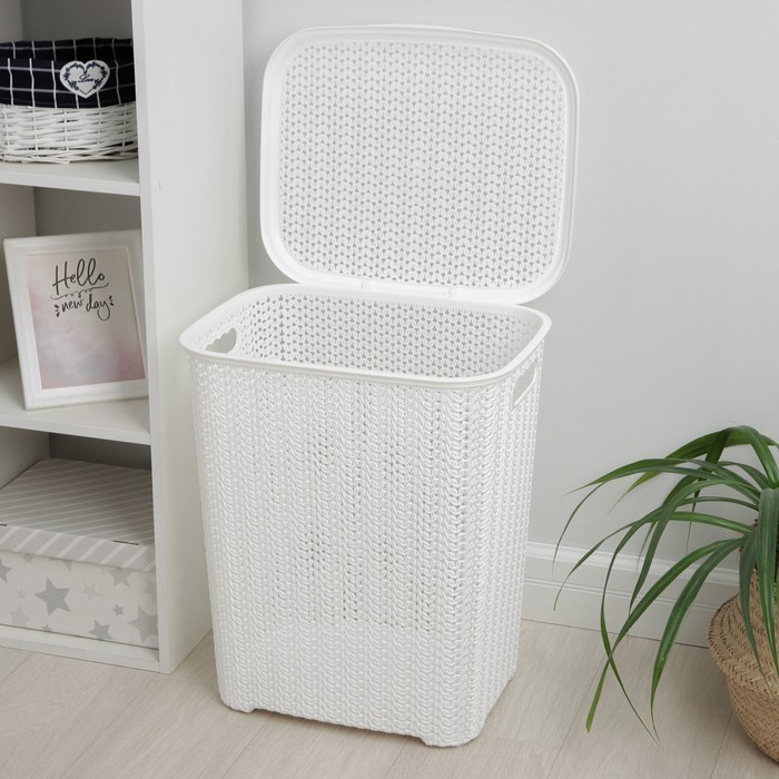 Корзина бельевая с крышкой «Вязь», 60 л, 44×36×52 см, цвет белый