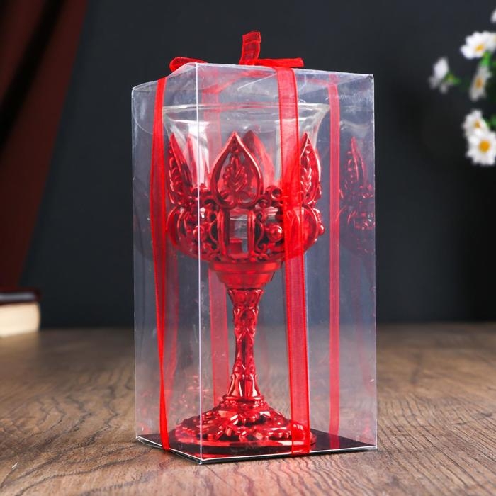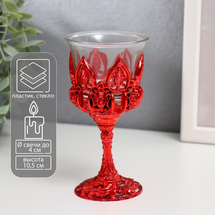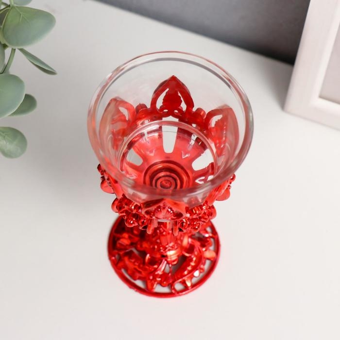 Подсвечник пластик, стекло "Наслаждение" красный 10,5х6х6 см