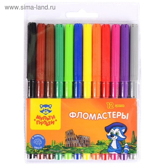 Фломастеры «Мульти-Пульти» серии «Енот в Италии» представлены с легкосмываемыми чернилами и вентилируемым колпачком. Тип наконечника – конический. Толщина линии составляет 2 мм, длина письма – не менее 500 метров. В наборе 12 цветов фломастеров: чёрный, коричневый, кирпичный, зелёный, салатовый, синий, жёлтый, оранжевый, красный, розовый, фиолетовый, серый. Корпус круглой формы изготовлен из полипропилена и имеет удобную круглую зону захвата. Фломастеры сохраняют стабильный цвет при письме на протяжении всего использования. Смываемые фломастеры на водной основе нетоксичны. Упакованы в блистер. Количество цветов: 12, Тип наконечника: конический, Длина линии письма: 500 метров.