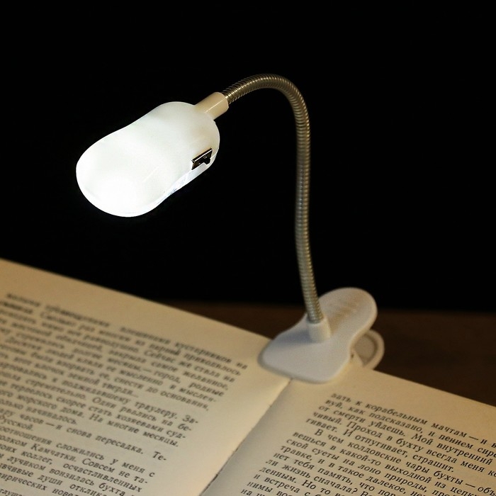 Светодиодная лампа на прищепке «Лучик» удобна для чтения книг или в качестве небольшой подсветки. Гибкая ножка основания.