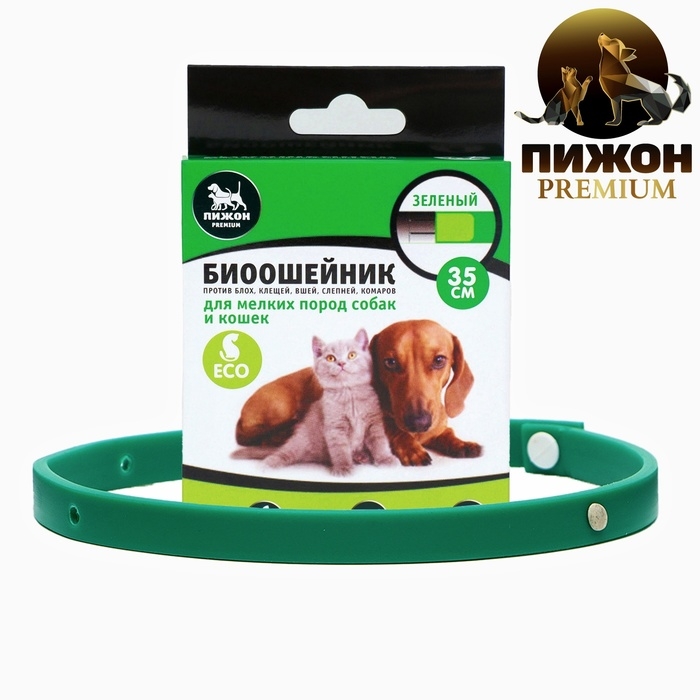 Биоошейник от паразитов "ПИЖОН" для кошек от блох и клещей, зеленый, 35 см