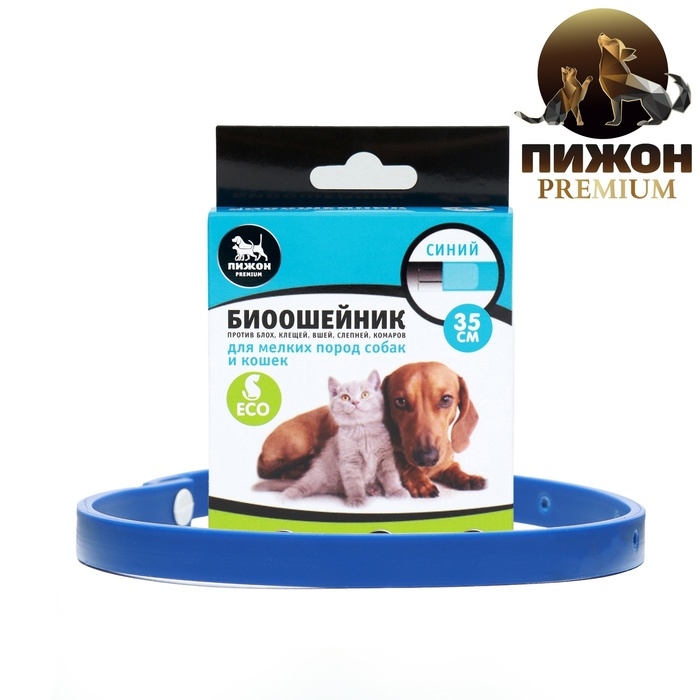 Биоошейник антипаразитарный "Пижон Premium" для кошек и собак, синий, 35 см