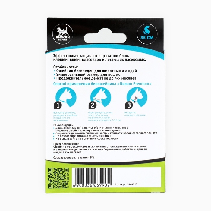 Биоошейник «Пижон Premium» предназначен для борьбы с блохами, клещами, вшами, власоедами, летающими насекомыми, а также для профилактики их появления.