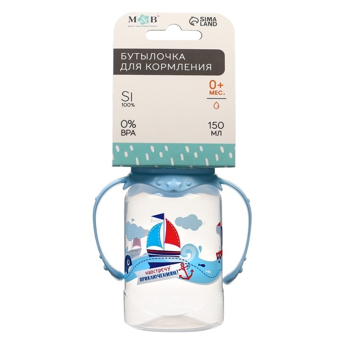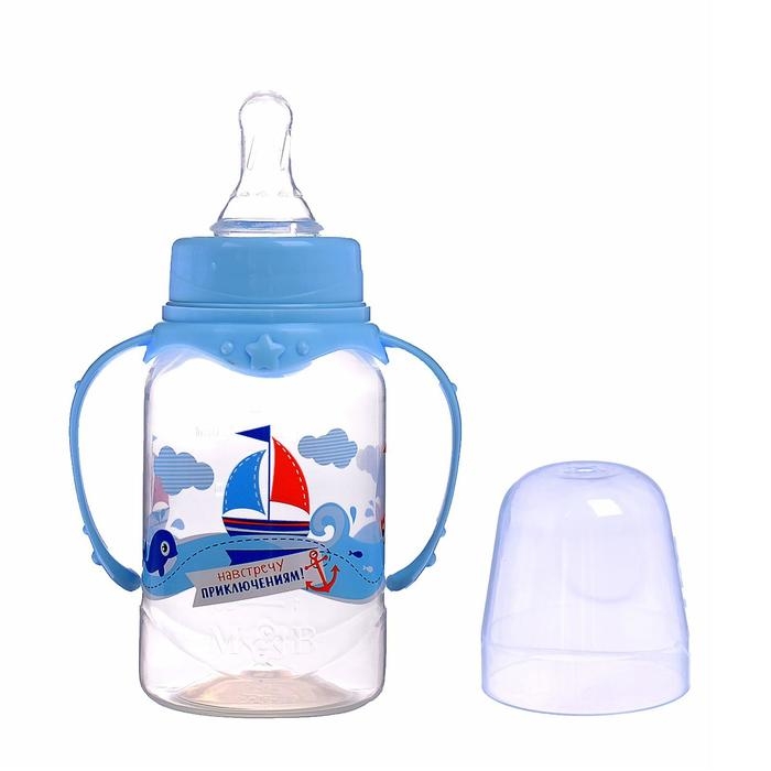 Бутылочка для кормления «Морское приключение», классическое горло, с ручками, 150 мл., от 0 мес., цвет голубой