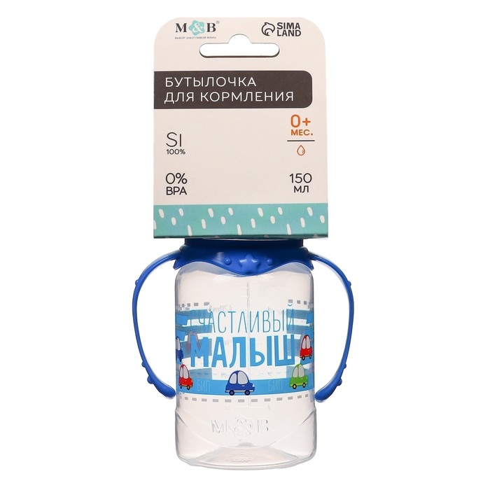 Бутылочка для кормления «Малыш», классическое горло, с ручками, 150 мл., от 0 мес., цвет синий