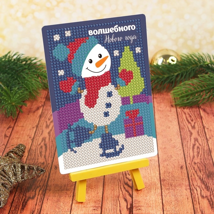 Алмазная мозаика на новый год с частичным заполнением для детей «Снеговик», новогодний набор для творчества