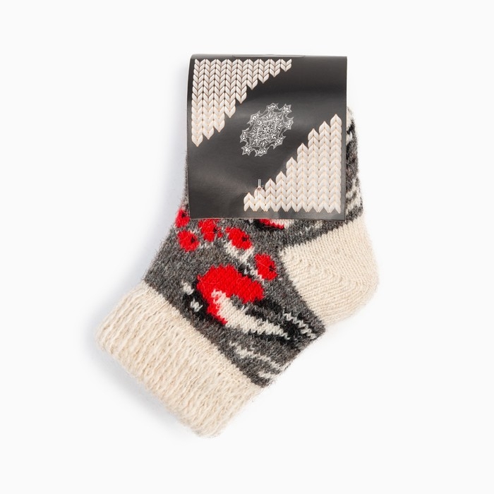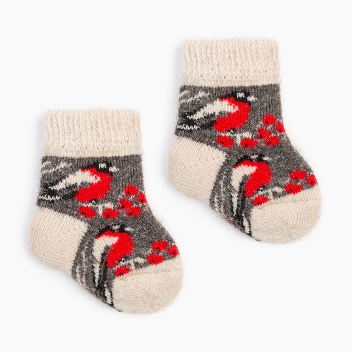 Носки детские шерстяные «Снегирь в снегу», цвет серый, размер 10