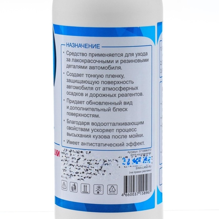 - Благодаря водоотталкивающим свойствам ускоряет процесс высыхания кузова после мойки.