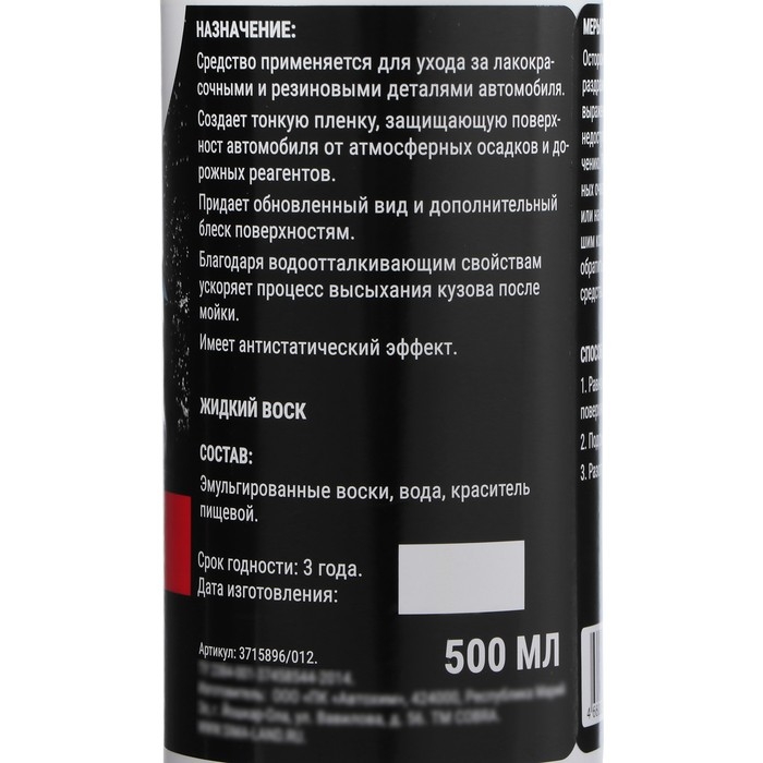 - Средство применяется для ухода за лакокрасочными и резиновыми деталями автомобиля.