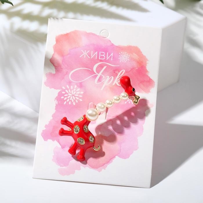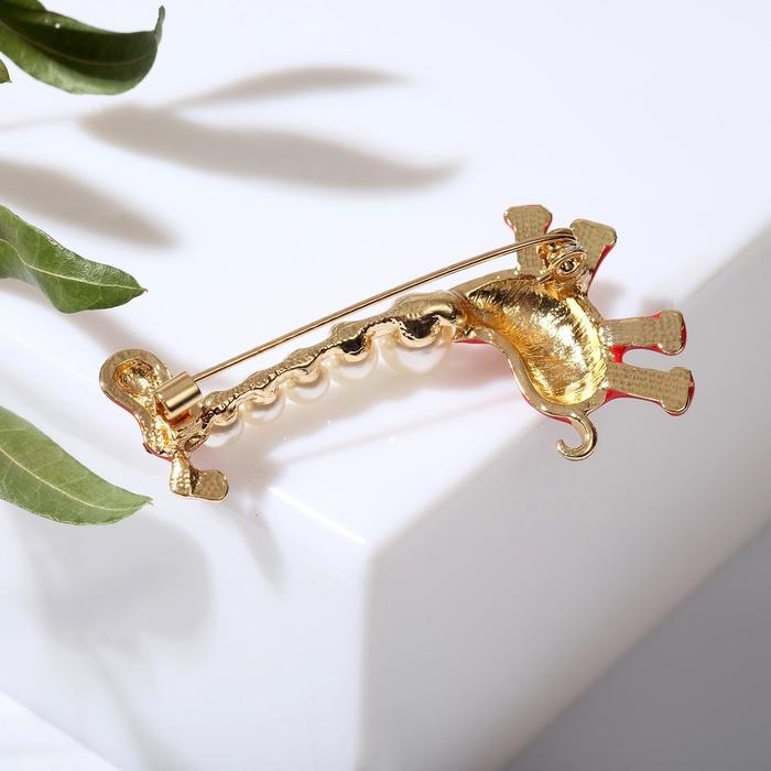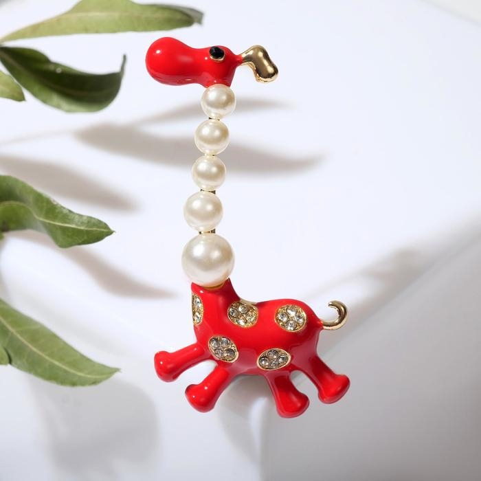 Брошь «Жираф весёлый», цвет красно-белый в золоте