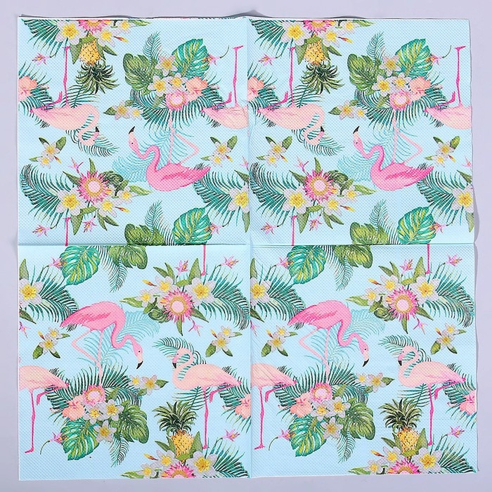 Салфетки бумажные «Фламинго с цветами», 33х33 см, набор 20 шт.