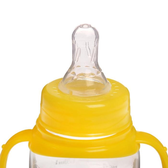 Бутылочка для кормления «Весёлая ферма», классическое горло, от 0 мес, с ручками, 150 мл., от 0 мес, цвет жёлтый