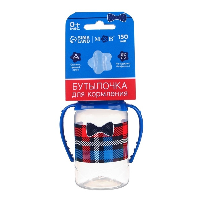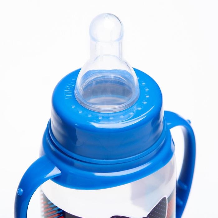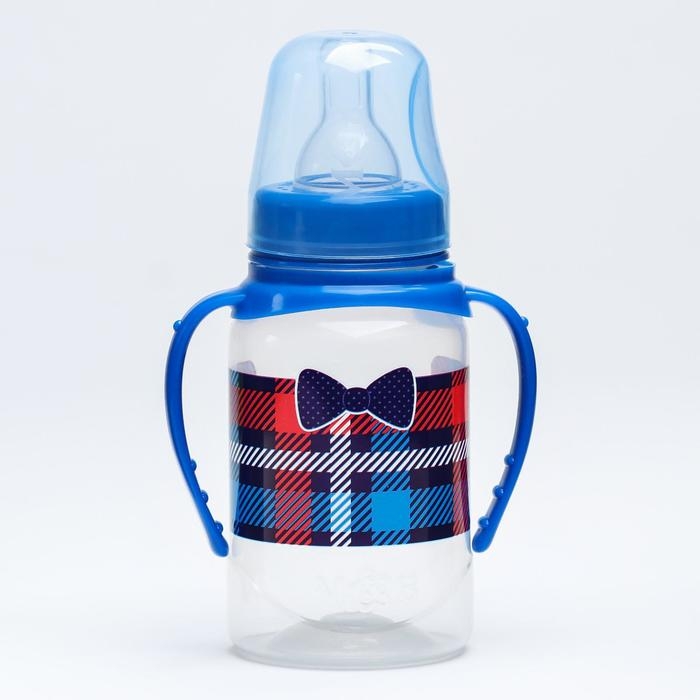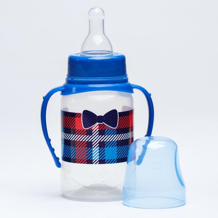 Бутылочка для кормления «Маленький босс»,классическое горло, с ручками, 150 мл., от 0 мес., цвет синий