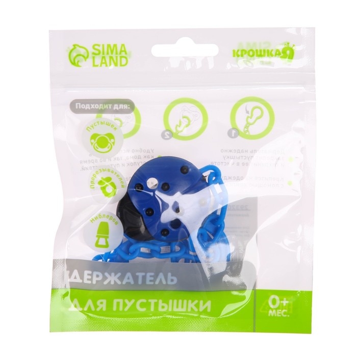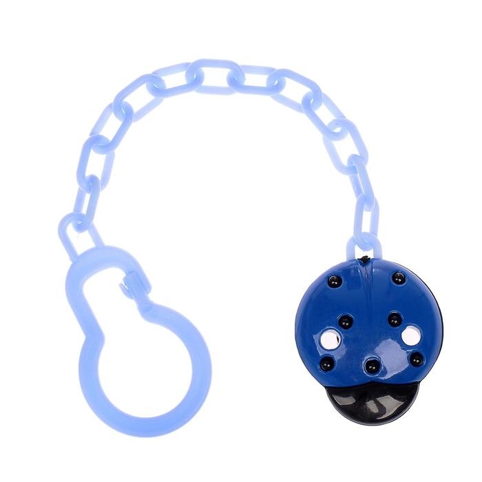 Держатель для соски - пустышки «Божья коровка», на цепочке, цвет синий