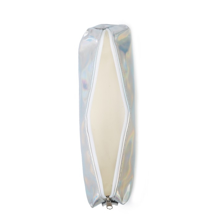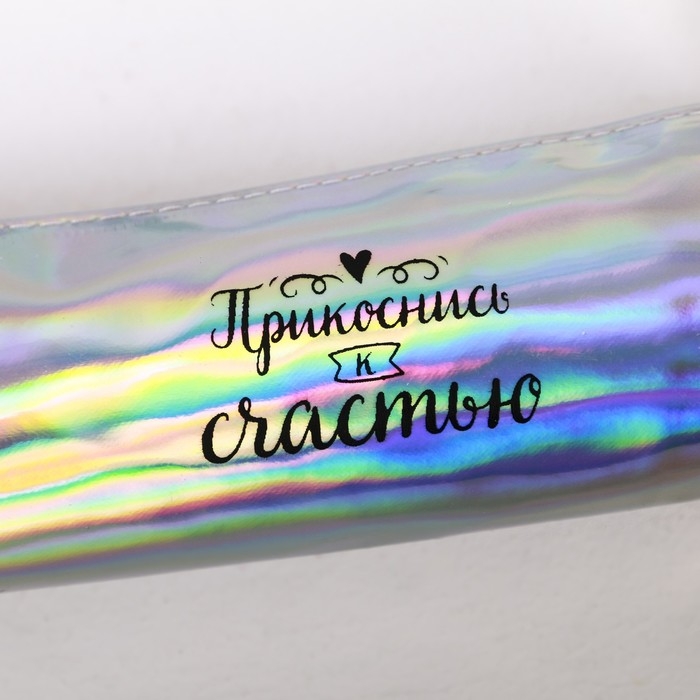 Пенал мягкий 1 отделение, 80 х 190 х 30 мм, кожзам зеркальный "Прикоснись к счастью" серебристый/перламутр