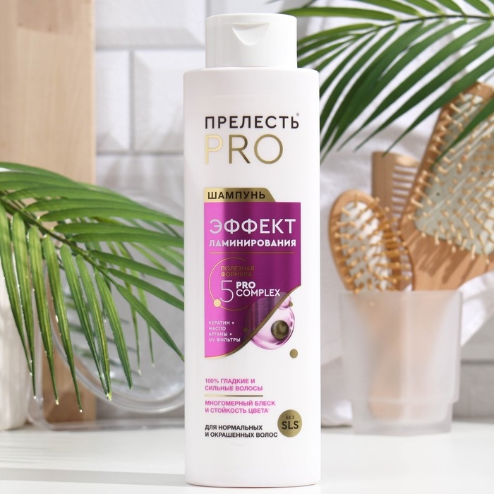 Шампунь для волос Прелесть Professional «Эффект ламинирования», с аргановым маслом и кератином содержит в своем составе масло арганы и кератин.