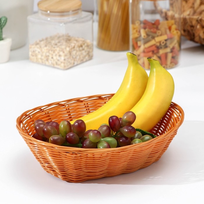 Корзинка для подачи Доляна «Плетёнка», 25×18×6,5 см, цвет коричневый