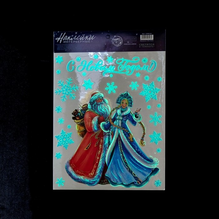 Наклейки новогодние, интерьерные со светящимся слоем «С Новым годом!», 21 х 29,7 см, Новый год