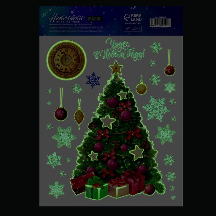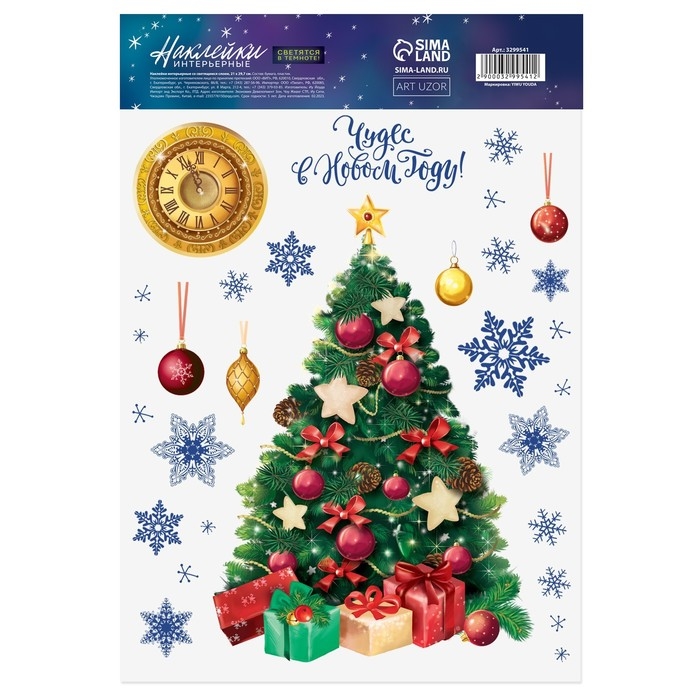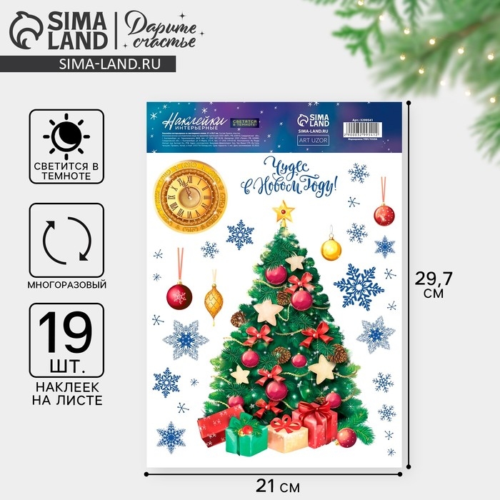 Наклейки новогодние, интерьерные со светящимся слоем «Чудес в Новом Году», 21 х 29,7 см, Новый год