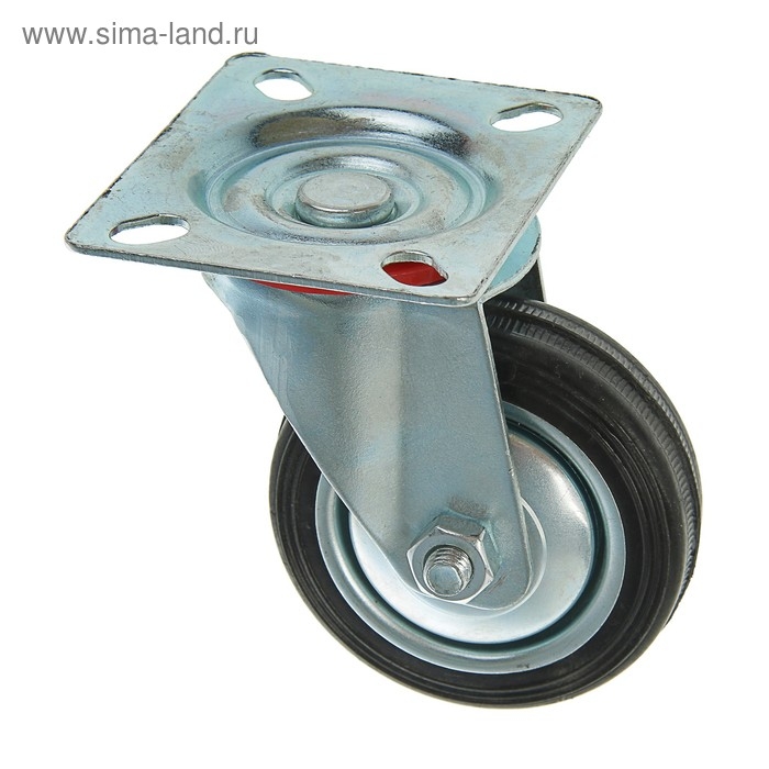 Колесо для транспортных тележек изготовлено из черной резины.