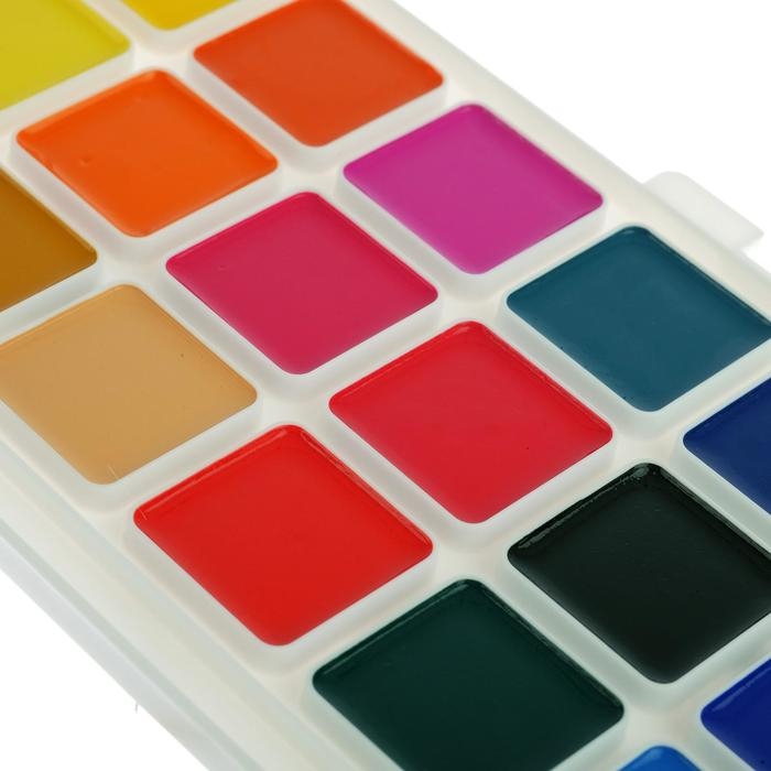 Краски акварельные, + 1 кисть, в пластиковой коробке, 18 цветов