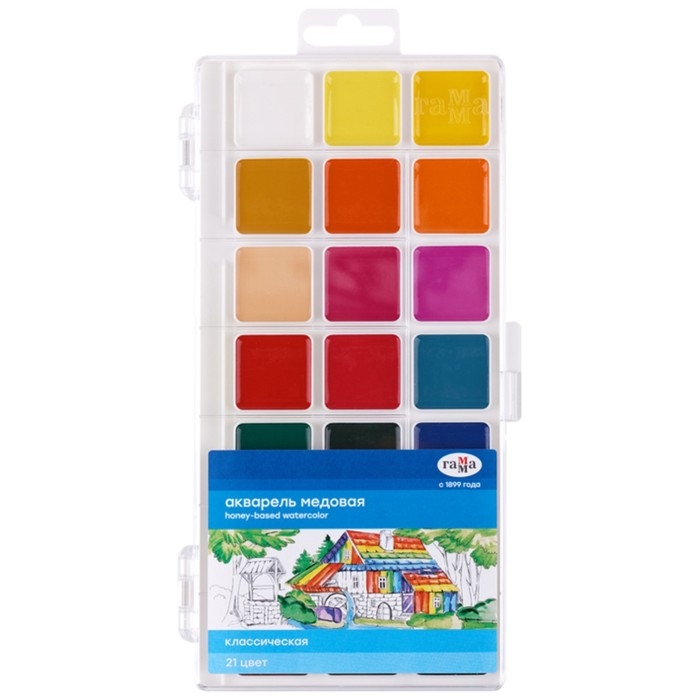 Акварель 21 цвет Гамма "Классическая", медовая, без кисти, пластик