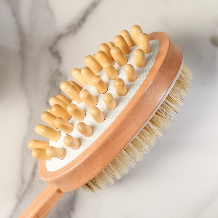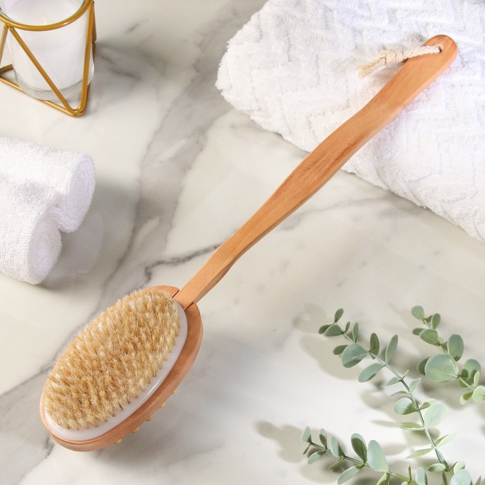 Щётка массажная для тела Доляна, с ручкой, натуральная щетина