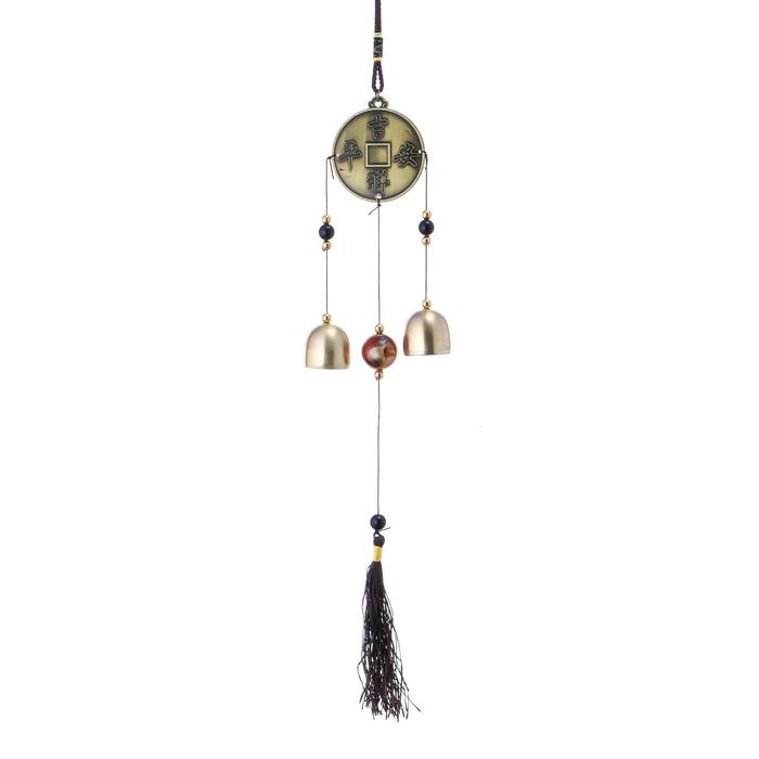 Музыка ветра металл "Драконы на монете" 2 колокольчика 37 см