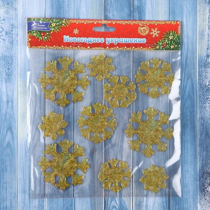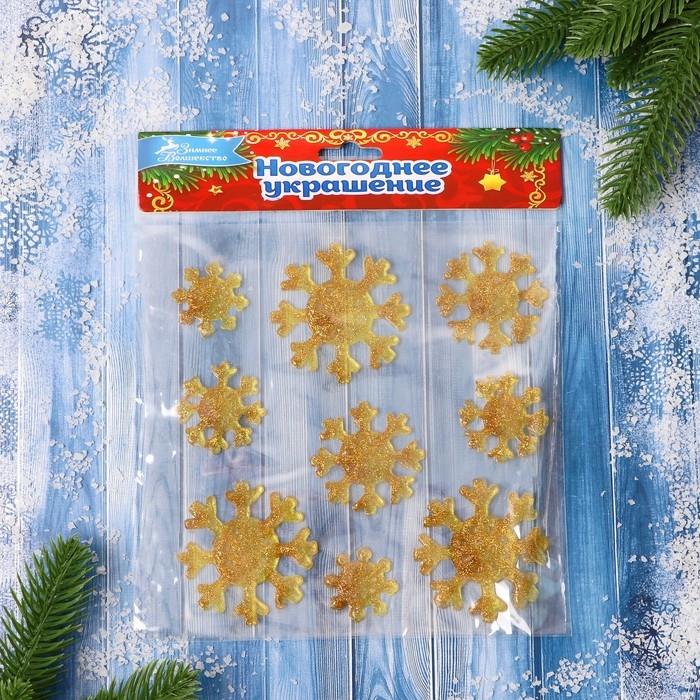 Наклейка на стекло "Снежинки сияние" (набор 9 шт) 18,5х18,5 см, золото