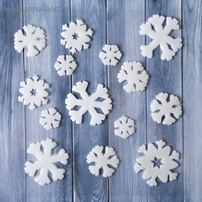 Наклейка на стекло "Белые снежинки" (набор 14 шт) 18,5х18,5 см