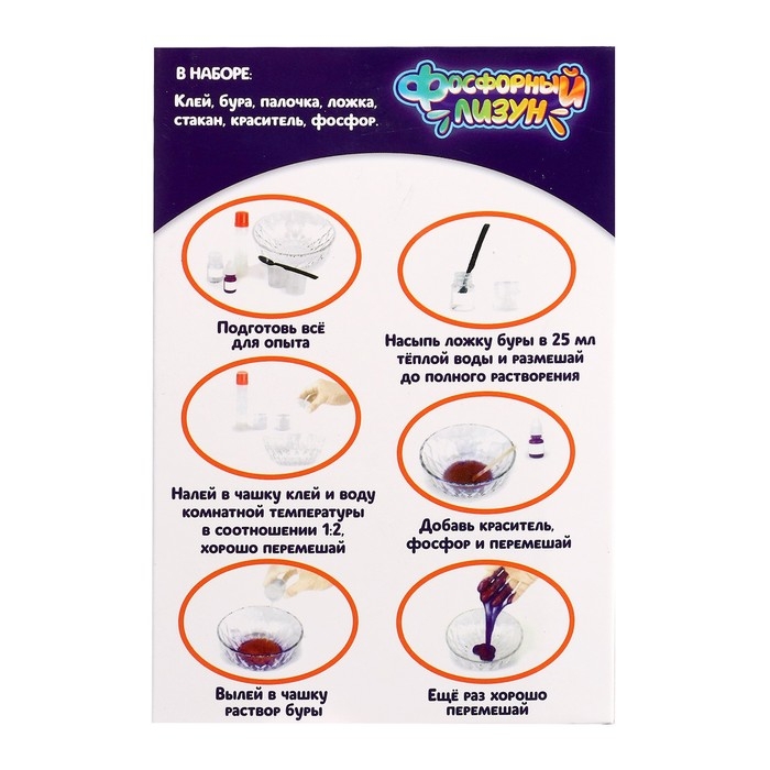 Набор для опытов «Фосфорный лизун» позволит ребёнку провести увлекательный химический эксперимент и создать необычный лизун своими руками.