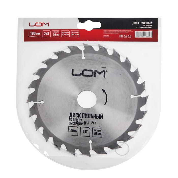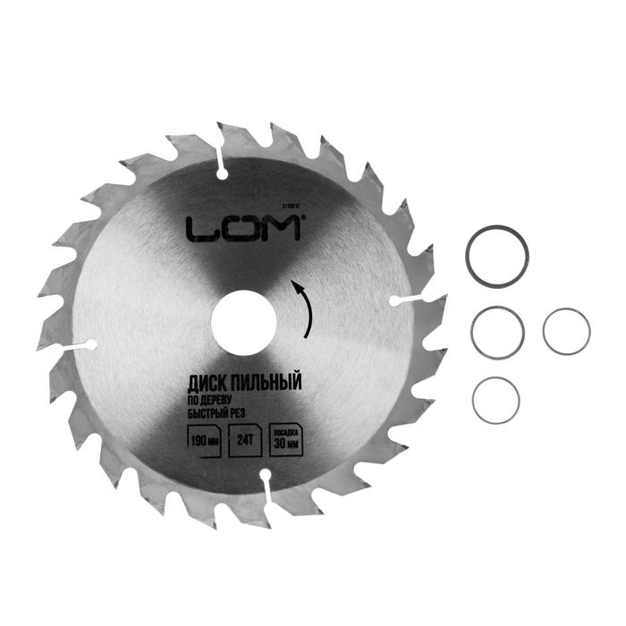 Диск пильный по дереву ЛОМ, быстрый рез, 190 х 30 мм (кольца на 20, 16), 24 зуба