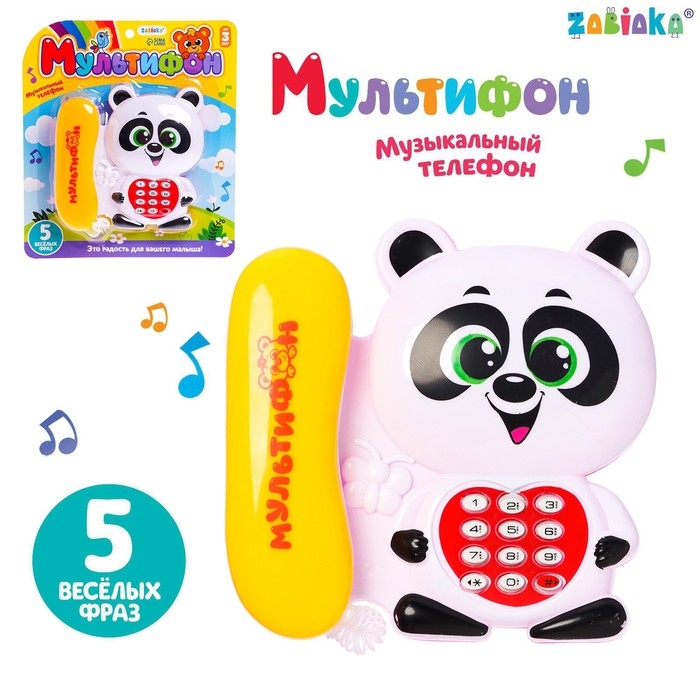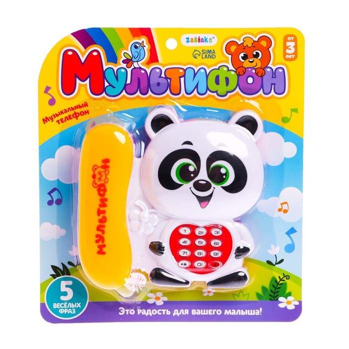 Музыкальный телефон «Мультифон: Панда», русская озвучка, работает от батареек, МИКС