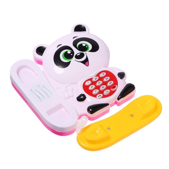 Музыкальный телефон создан для сюжетных игр. Он помогает развивать моторику и слух у деток. Дизайн игрушки не оставит малышей равнодушными, ведь она выполнена в виде милой зверушки — панды.
