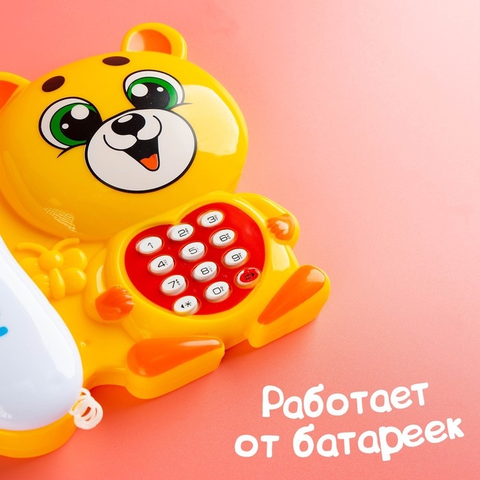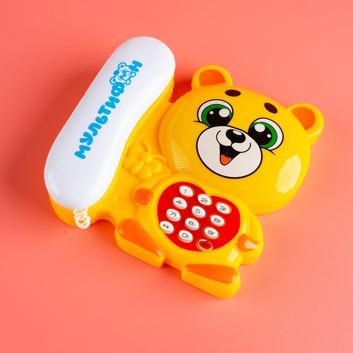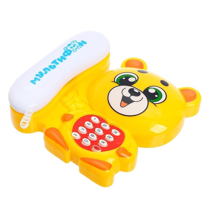 Музыкальный телефон «Мультифон: Весёлый мишутка», русская озвучка, работает от батареек, цвет жёлтый