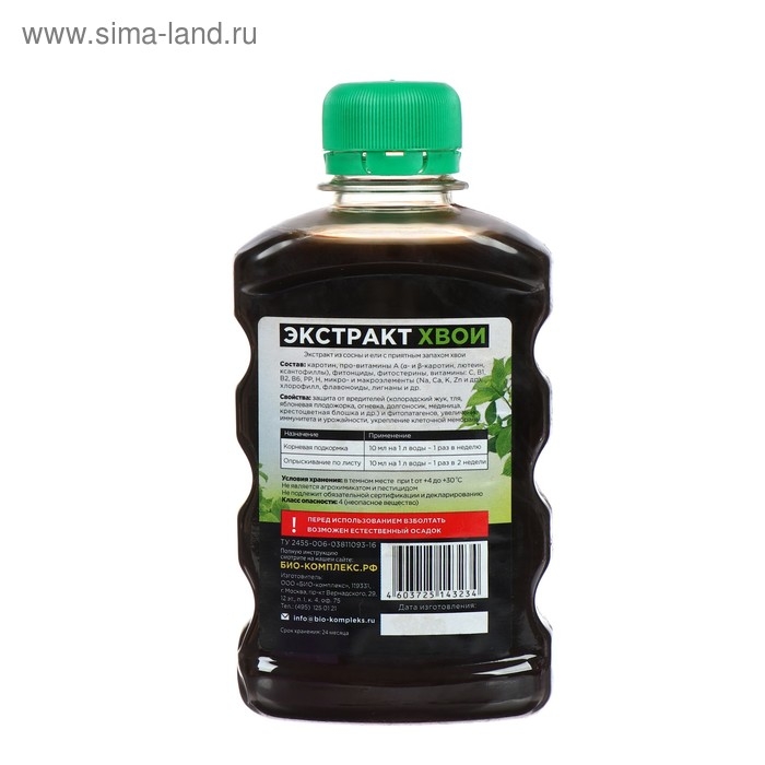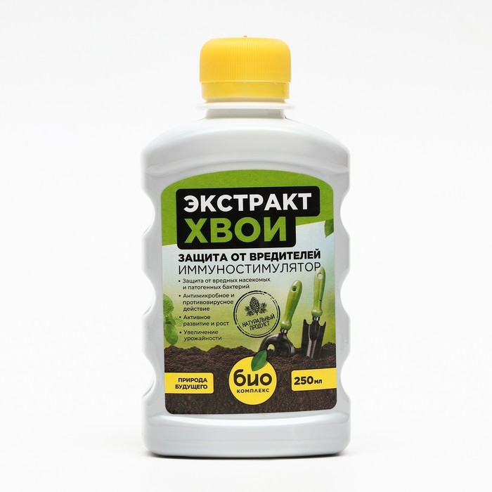Экстракт хвойных деревьев с богатым составом биологически активных веществ. Отпугивает вредителей, защищает от болезней. Улучшает иммунитет, обмен веществ, стрессоучивость, урожайность.