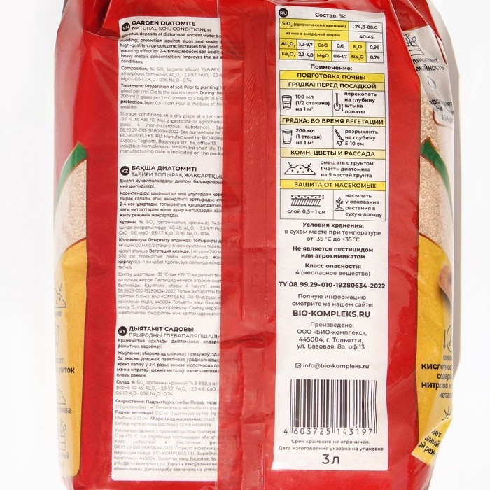Универсальный природный почвоулучшитель из остатков морских водорослей, на 80% состоит из кремния. Защищает от насекомых, удерживает влагу, укрепляет растение, увеличивает урожайность.
