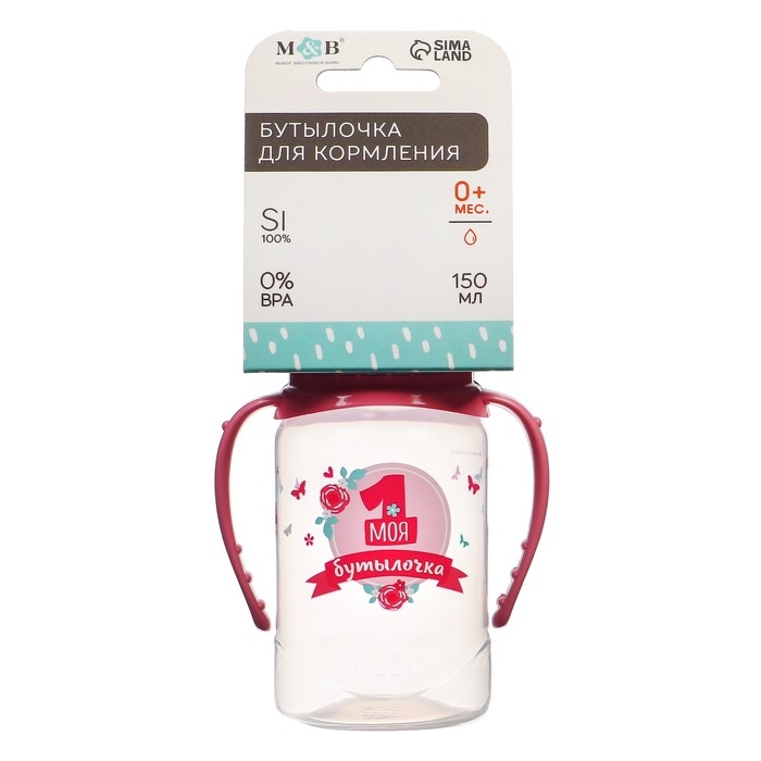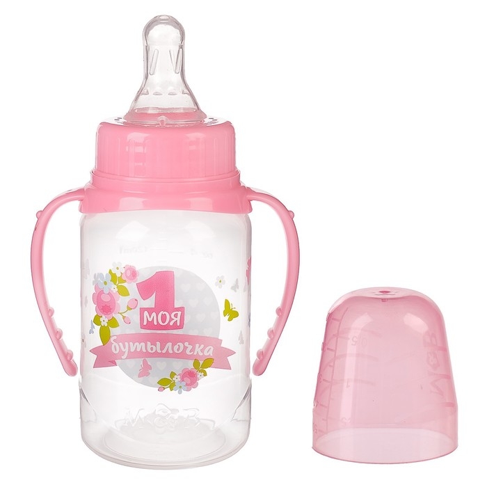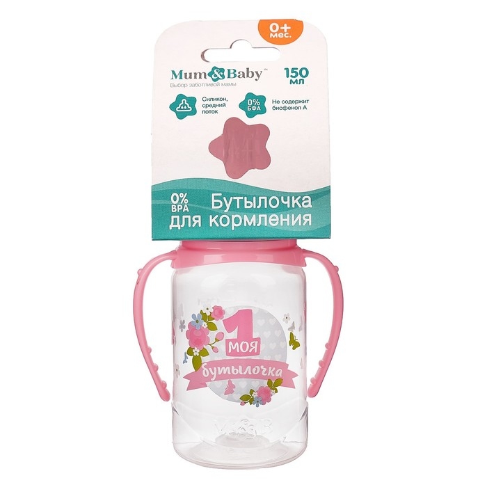 Бутылочка для кормления с ручками «Моя первая бутылочка», классическое горло, 150 мл., от 0 мес., цвет розовый