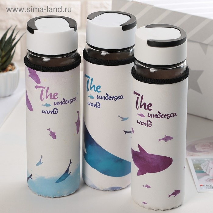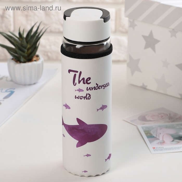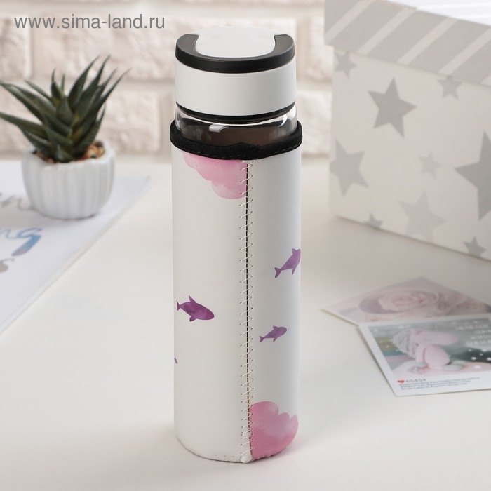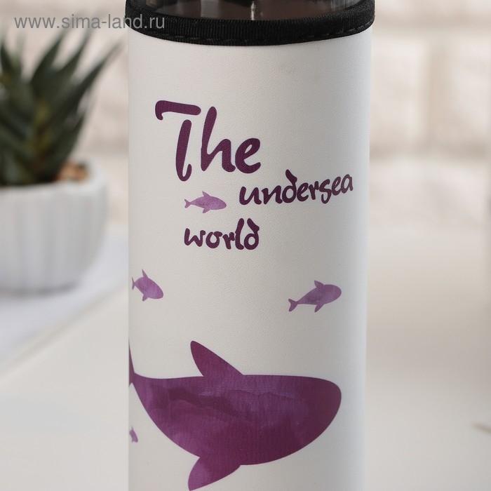 Бутылка для воды стеклянная с ручкой в чехле «Кит», 500 мл, h=23,5 см, рисунок МИКС