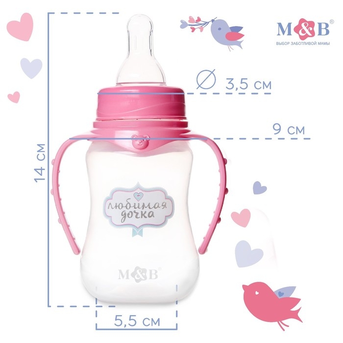 Бутылочка для кормления «Любимая доченька», классическое горло, приталенная, с ручками, 150 мл., от 0 мес., цвет розовый