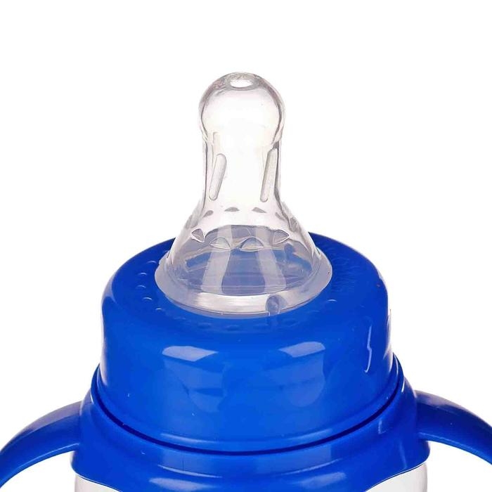 Бутылочка для кормления «Динозаврик Рикки», классическое горло, с ручками, 150 мл., от 0 мес., цвет синий