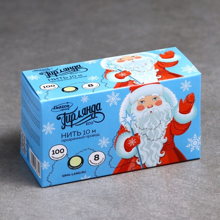 Гирлянда «Нить» 10 м, IP20, прозрачная нить, 100 LED, свечение тёплое белое, 8 режимов, 220 В