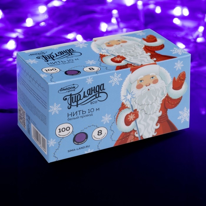 Гирлянда «Нить» 10 м, IP20, белая нить, 100 LED, свечение фиолетовое, 8 режимов, 220 В