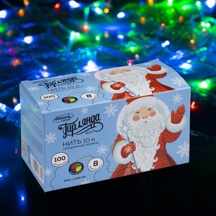 Гирлянда «Нить» 10 м, IP20, прозрачная нить, 100 LED, свечение мульти, 8 режимов, 220 В