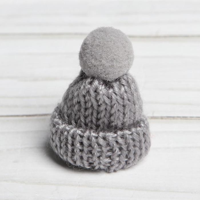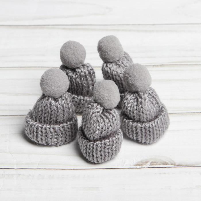 Шапка для игрушек вязаная с помпоном, набор 5 шт., цвет серый