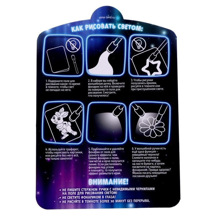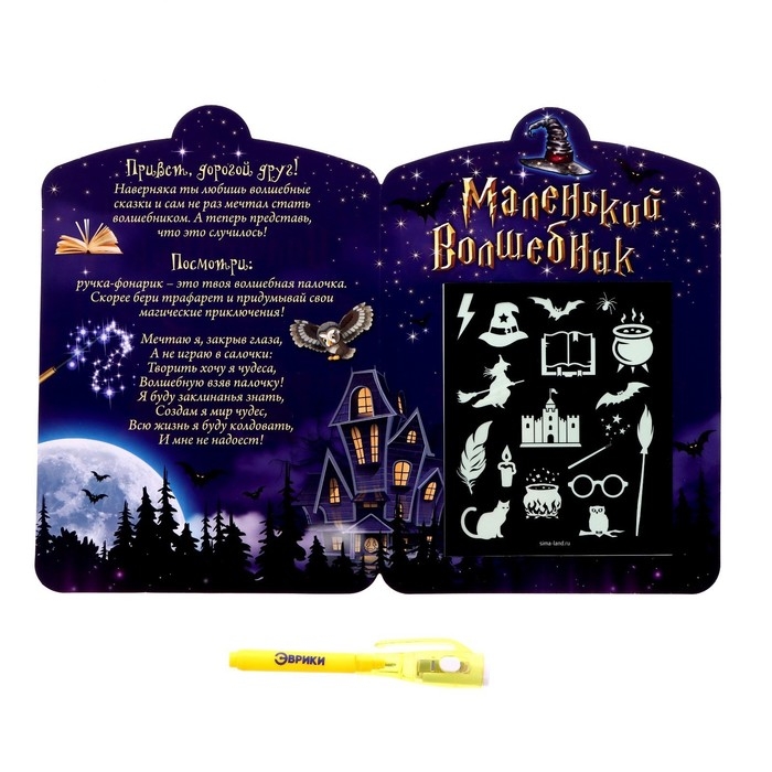 Набор для рисования светом «Маленький волшебник», ручка с фонариком и невидимыми чернилами