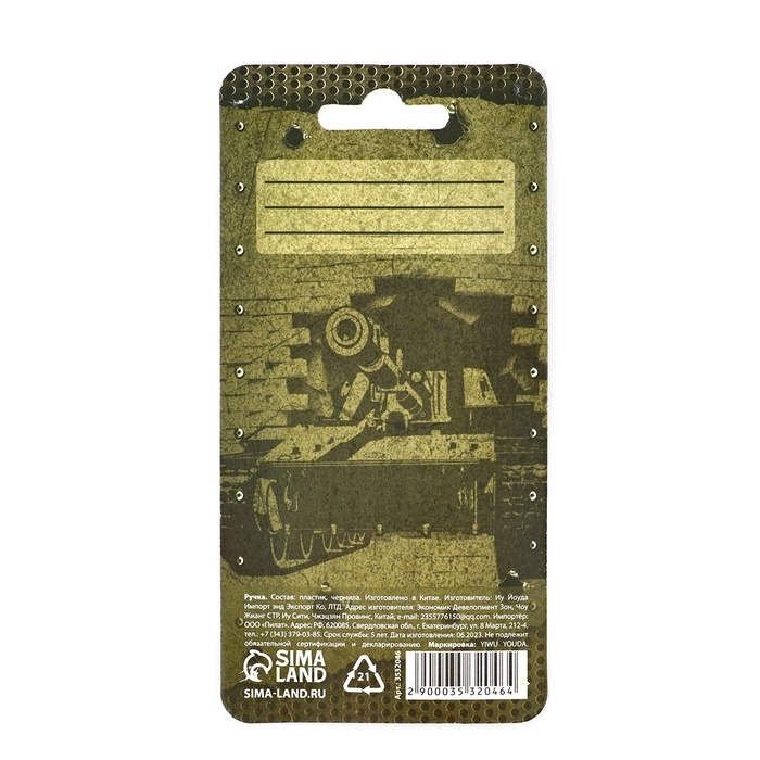 Ручка прикол шариковая синяя паста танк «Настоящему мужику» на подложке