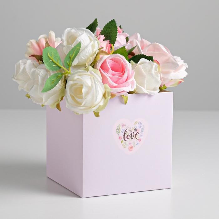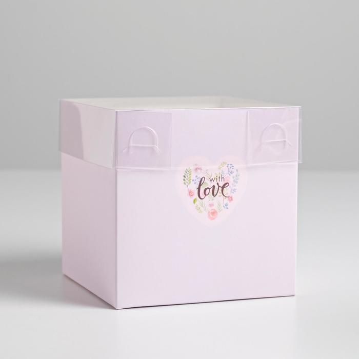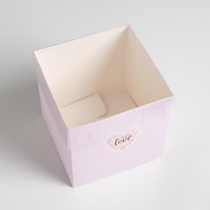 Коробка подарочная для цветов с PVC крышкой, упаковка, «С Любовью», 12 х 12 х 12 см